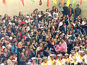 This study analyses the symbolic elements of the Lurol Festival of the ethnically mixed region of Amdo near Tongren in Qinghai’s Huangnan Tibetan Autonomous Region. A lot of people arrived from the surrounding villages to partake in this special ceremony (fig. 3). It is a secular festival held on the sixth month of the lunar calendar for a period of 5 days as a way of praying for good health and a bountiful harvest (like most seasonal festivals in Japan) to their protecting deities such as the mountain gods and the god of the underground, the Dragon. Lurol itself derives its name from the Tibetan Glu or Klu (pronounced both ways). “Glu” means mountain songs and “Klu” makes allusion to the Dragon. The last term “rol” means to play but it alludes to dancing and singing for the gods, feelings of joy and being greeted with a warm welcoming. Although this festivity is given to the dragon, “Glu” seems to be the term for which Lurol was named after (Nagano 1989).