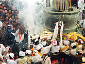 The guardians of the town, the mountain deities, are offered red color offerings and warming liquids such as beer and alcohol, and all white offerings mentioned above. The blood, as mentioned earlier is given by self-tortured dancers, which drop their blood directly onto the floor.