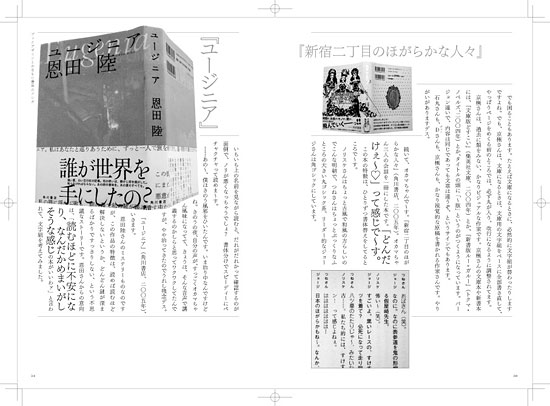 現在、最も脚光を浴びているブックデザイナー=エディトリアルデザイナーである祖父江慎氏は、また同時に近代出版文化や初期活字成立過程への論及でも知られている。ここではブックデザインの最新の現場としての側面と活字書体成立史研究の側面の二つの部分の論考がある。祖父江氏においてはデザイナーとしてのタイポグラフィ的実践は、その活字書体研究の成果と分かちがたく結びついている。われわれはここでそうした祖父江氏の考察をきわめてライブな「しゃべり言葉」として再現するようにしたが、実はここでの過剰にもポップとも思える祖父江氏の「文体」は、ほぼその90パーセントほどは再構成時に「校正」として赤字書き込みされたものである。レイアウトは当然そうした祖父江氏の意図された「文体」に沿うべく、さまざまなイレギュラーな配置をこころみた。
