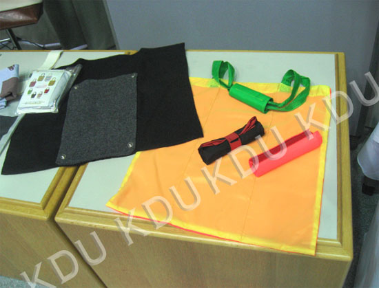 私たちは、そういう観点から、廃材を使ったおしゃれなアクセサリー(写真26)や、廃材の出ないデザインエプロン、廃材を使ったエコバックを提案します(写真27)(写真28)(写真29)。