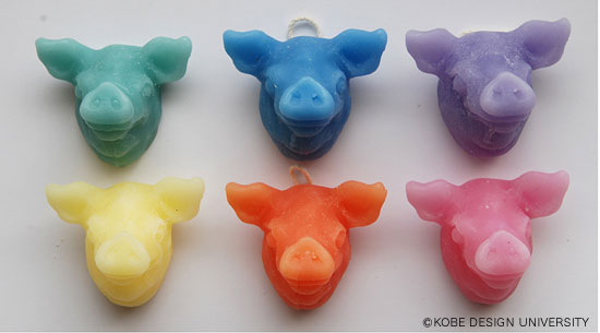 手順として、パラフィンワックスを湯煎で溶かし、既成の豚型に流しこみ、固まったワックスを型から取り出し、きれいに彫り出し完成させる。およそ10分でワックス彫刻を制作。 (写真29-写真32)