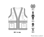 - 文様は六つの種類から成り立つ。これらの図柄は全てガラスビーズ玉で作られている。PGaの文様は衣服の中央に六つの人頭が一列に並んでいるうちの一つである。その両脇に三角紋がビーズ刺繍されている。人頭紋はパイワン族の伝統衣服においては、よく目にすることができるが、形態の表現方法の違いにより、その意味性も異なる。一般的には祖霊信仰観念に基づいて作られたものとku-masと呼ばれる宇宙神、或いは出草(頭狩り)による功績を示すもの、また日常生活において頭部に装飾するものを具象化したもの、などに分けられている。PGaの形態から見ると、頭の上に一つのアーチ状のようなものが冠られており、そのアーチ状の下にそれぞれ四つの線で作られている。このような形態から判断すると、このアーチ形のものは一種の装飾品であると考えられる。こうした人頭紋は、パイワン族の生活習慣に見られる頭に飾る装飾品を具象化したものであると考えられる。