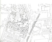 また、ダイアグラム「アルファベット」には〈Underground〉、〈Interval〉、〈Site〉、〈Void〉、〈Linear〉、〈Window〉、〈Combination〉の7つの基本パラメーターがあり、そのパラメーターに対して各々10個の基本形が設定されており、これら各パラメーターが複雑にくみ合わされることによってユダヤ博物館が存在している。これらの基本形は、すべての図面が完成された後にコンセプチュアルなものとして作成されたものと思わるが、後で作成されたとすると不可解な点が見られる。それは、これらのパラメーターに対する各々10個の形は、ブーレーズの「ストリュクチュール〈Ia〉」で用いられた個々のパラメーターの様に、その単一のパラメーター内において完結するものではなく、例えば〈Interval〉や〈Site〉のパラメーターの10個の基本形を組み合わせても、それらが図面上と適合するものではなく、様々な箇所で部分的に重なり合っていたり所々が欠けていたりしているのである。つまり、リベスキンドは7つの基本パラメーターに対して彼がその基本形として導きだしたものは図面からただ解体して抽出した形ではなく、ひとつひとつの基本形を各基本パラメーターに対する素材として抽出しており、そこにこのダイアグラムが「アルファベット」と名付けられている意味が隠されているのではないだろうかと考える。「アルファベット」が複合的に集まり「ワード(Word)」となり、さらに「センテンス(Sentence)」へと生成されるように、合計70個の素材が組み合わさることによってユダヤ博物館が生成されるという、どこか設計過程においてある種の自動生成的なイメージを設計手法に付加しているように捉える事が出来る。(図13)(図14)
